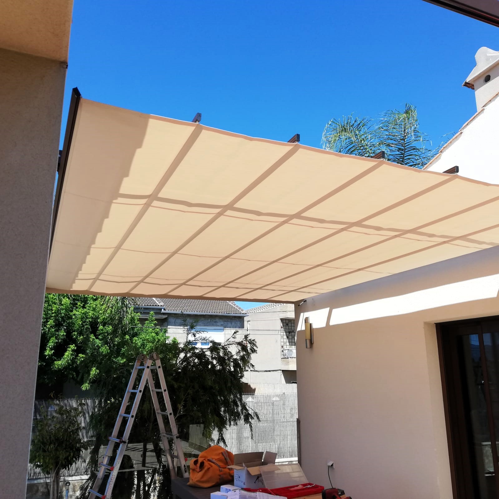 O toldo de correr com estrutura entre paredes ou no teto é um modelo de toldo de correr que não requer suportes, pois é fixado diretamente entre as paredes perimetrais ou no teto.
