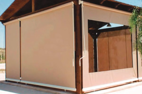 Este sistema de toldo vertical é utilizado tanto para fechar cafés como para terraços particulares.