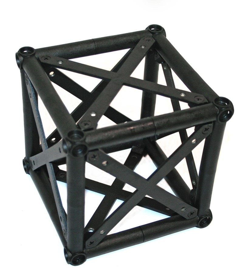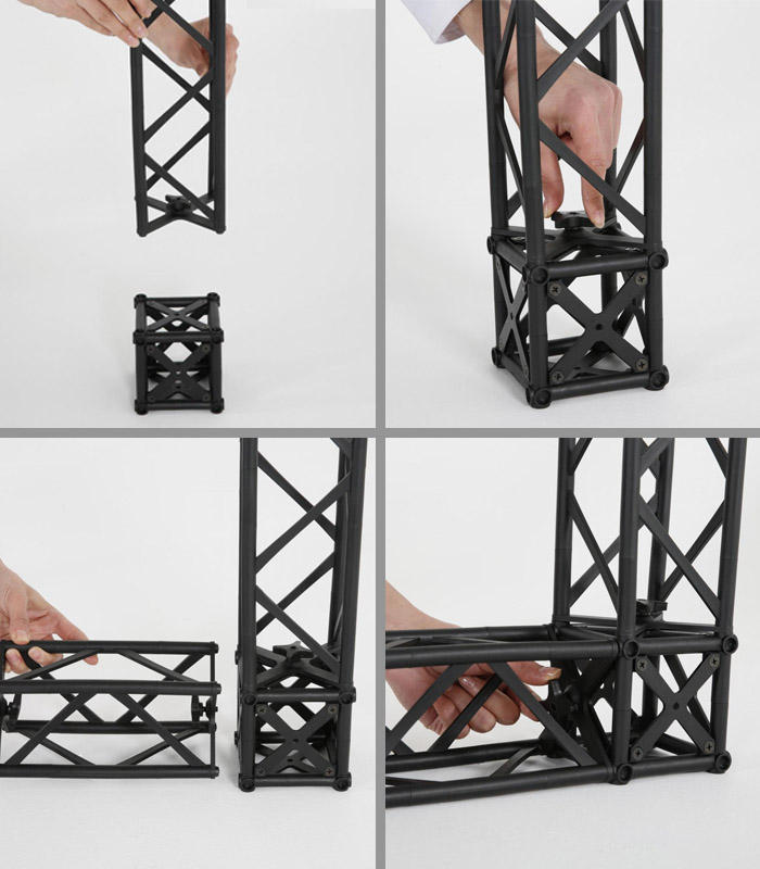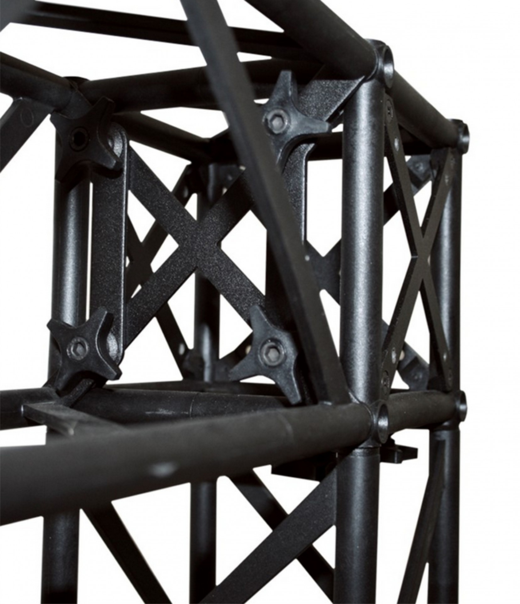 Módulo Cubic para Black Truss System. O Corner Block serve para unir módulos em até 6 direcções diferentes.